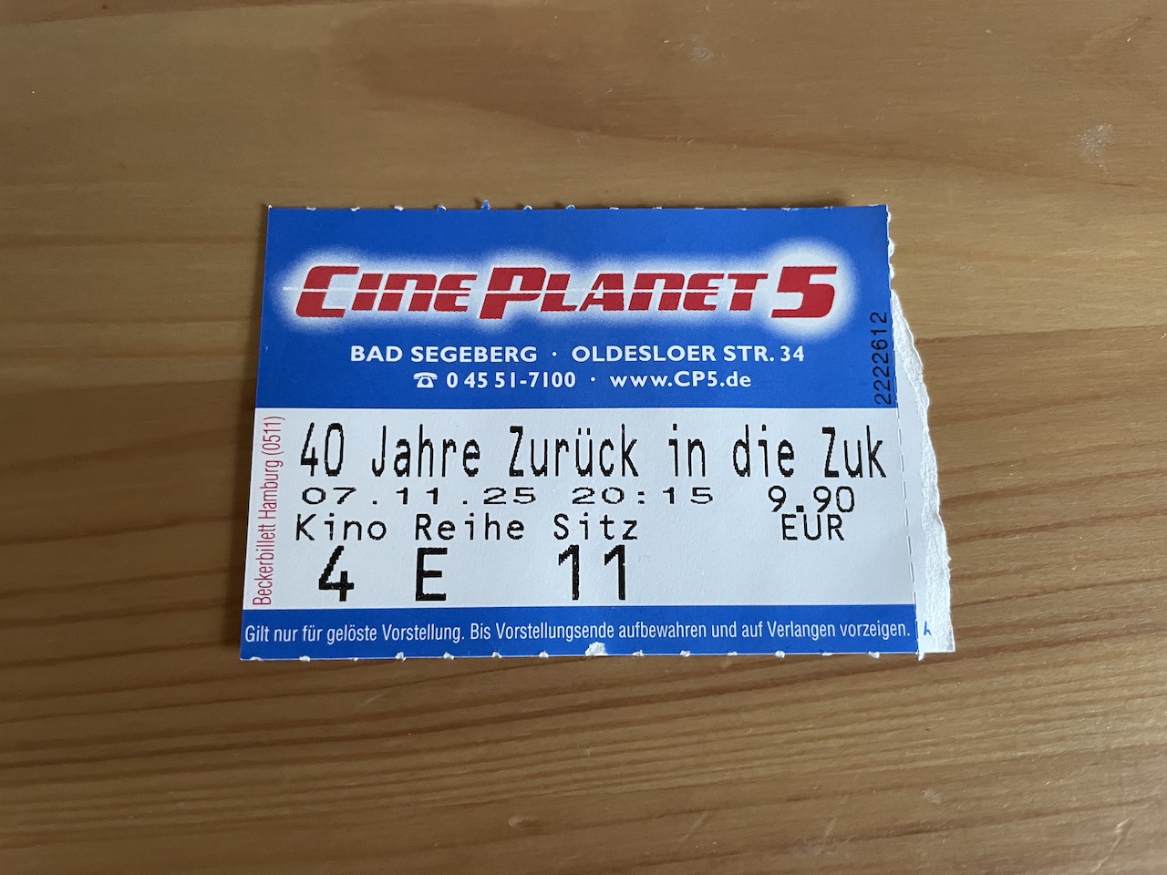 Vor kurzem erfuhr ich, dass Zurück in die Zukunft anlässlich seines 40jährigen Jubiläums für kurze Zeit erneut aufgeführt wird, u.a. auch in Bad Segeberg.